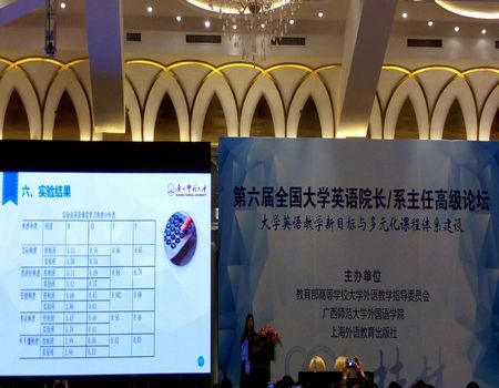 论坛邀请了教育部高等学校大学外语教学指导委员会主任委员王守仁教授做主旨发言,宏观上对《大学英语教学指南》做了题为“以培养英语应用能力为导向,构建大学英语课程体系”的解读报告。上海外国语大学束定芳教授就大学英语教学改革:多元目标、课程设置与教材建设进行了详细的阐述。华南理工大学秦秀白教授及南京大学丁言仁教授分别以“加强批判性阅读和鉴赏性阅读,开拓《综合课》教学新天地”和“以项目引领写作教学,为学生的批判性思维创造空间”为题对大学英语实际教学问题进行了精彩的报告。上海交通大学杨惠中教授对外语教学规律及学术英语的有效教学进行了深度汇报。湖南大学刘正光教授和华中科技大学徐锦芬对英语语言学习认知及教材编写展开探讨。会上,广西师范大学外国语开元(中国)汇报了其大学英语教学改革成果,详细地展示了地方特色大学英语翻转课堂实验研究。