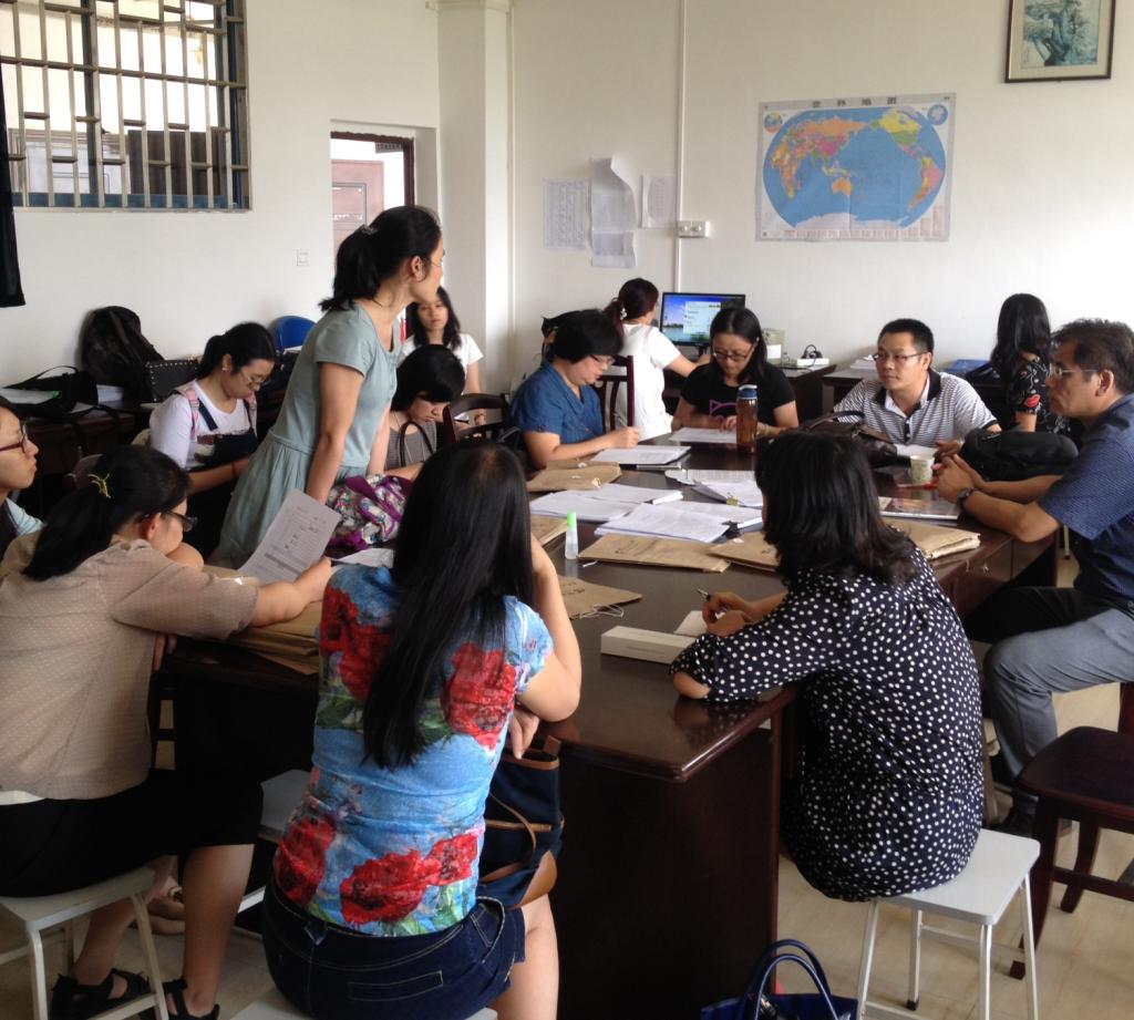 2016年9月13日下午,大学英语教研室(I)秋季学期第二次教研例会在雁山校区04309室召开。会议由教研室主任韦运会老师主持,陈湘柳副院长以及教研室全体老师参加了本次例会。会议围绕已过四级的同学如何分班、是否针对这些同学进行六级训练以及是否增加四级训练时间等相关问题进行了热烈地讨论。大家各抒己见并最终达成了共识。
