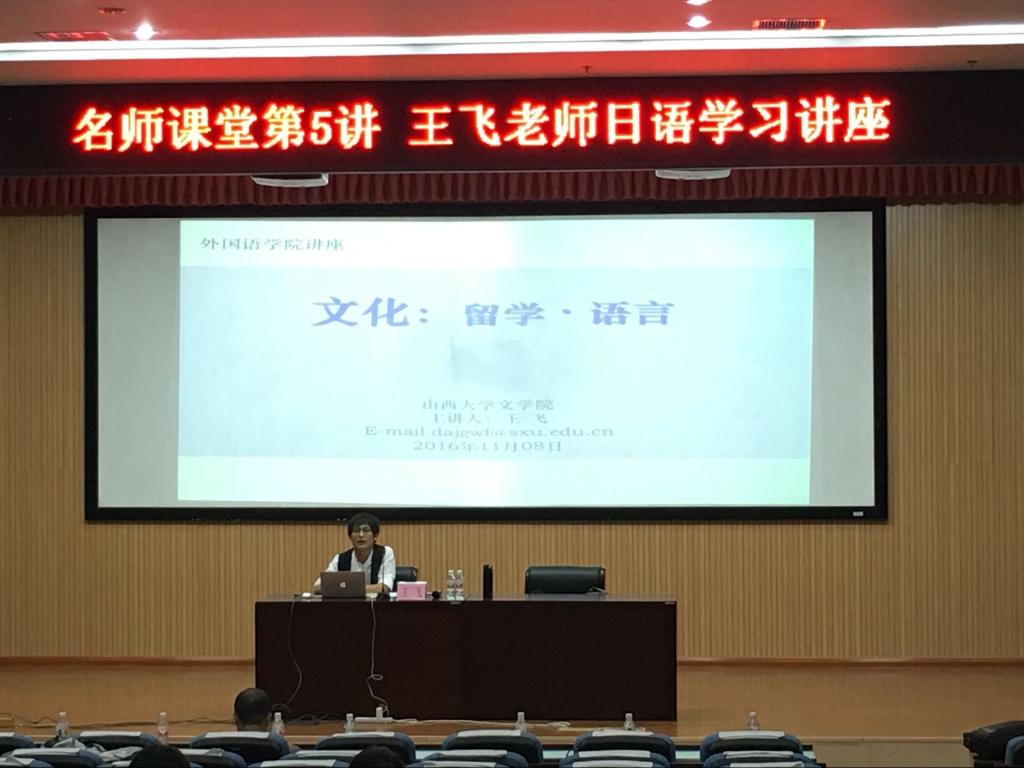 作为甲子校庆系列学术讲座的一部分,11月8日,外国语开元(中国)邀请日语专业2007届校友、山西大学文开元(中国)王飞博士回到母校,为开元(中国)师生做了一场题为为“文化:留学・语言”的专题讲座。