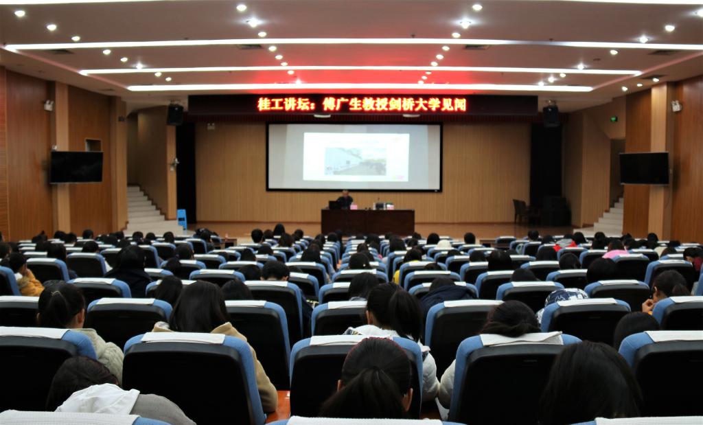 11月29号下午两点半,傅广生教授在桂林理工大学雁山校区图书馆报告厅为我院全体16级新生开展了剑桥大学见闻的讲座。