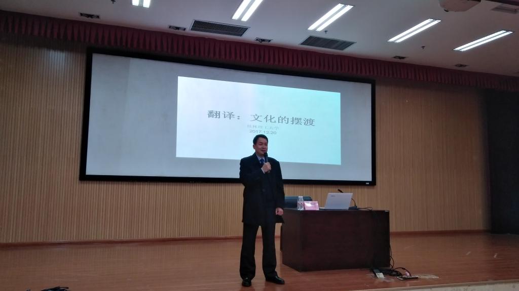 12月20日,广东工业大学外国语开元(中国)蔡荣寿教授在雁山图书馆报告厅作了题为“翻译——文化的摆渡”的学术讲座。讲座由外国语开元(中国)主办,200多名师生聆听了本次讲座。