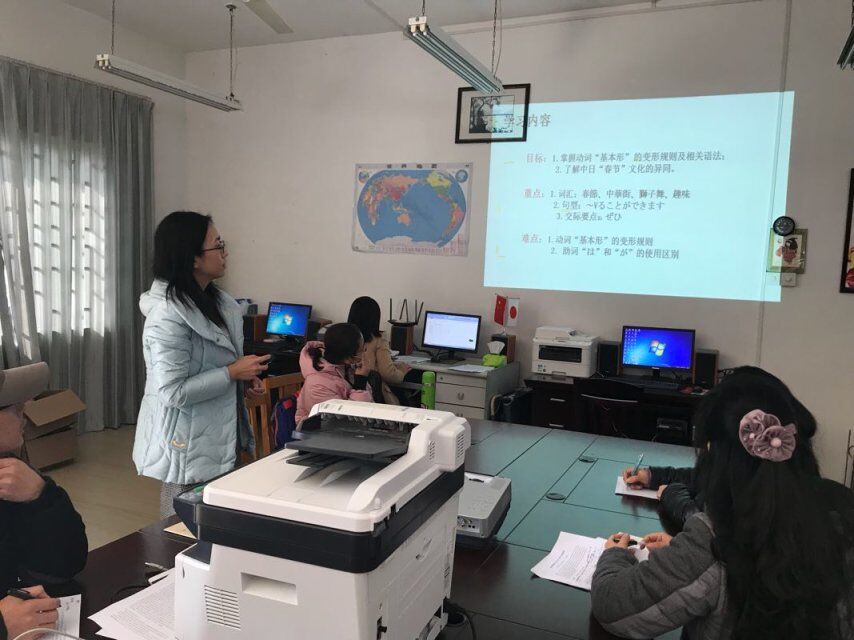 会议开始后,覃老师部署了2018届毕业生实习以及开题答辩的相关工作事项。然后就进入到本次会议的重要环节——董丽仙和李欣晨两位老师的模拟授课比赛。两位老师均报名参加了本年度的全校授课比赛。为了让她们以最好的状态参加正式比赛,教研室特别组织了今天的活动。李老师和董老师分别就二外日语和日本文学史课程的相关章节进行了精彩的呈现。其他参会老师也积极发表了自己的看法,提出了很多建设性的意见和建议。同时,大家都很期待两位老师在1月10日院赛上的精彩发挥!