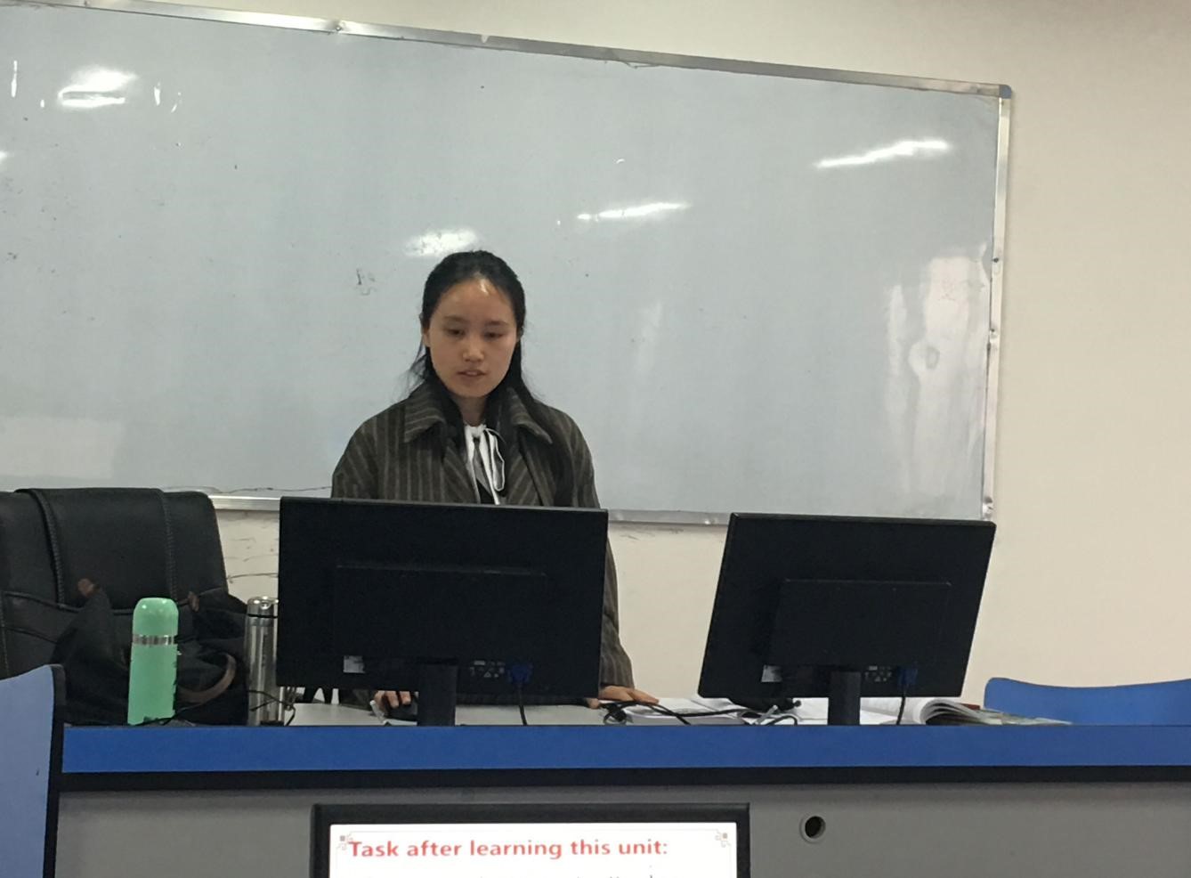 此次备课教案及PPT制作由莫娜和唐明凤两位老师合作完成,教学展示环节由莫娜老师主讲。莫老师结合编写的课件内容,将授课单元以全英文说课的形式做了系统化梳理和阐释。莫老师以布置学生的产出任务为驱动环节引入第一单元的“中国传统文化”学习,介绍了课件中与本单元主题相关的、贴近学生生活的教学活动的设计理念和具体的操作方法,并介绍了进行平行结构和下定义的教学方法及如何结合大学英语四级考试设置翻译组句活动。唐老师在之后的补充环节,进一步解释了课件设计中是如何把词汇学习贯穿在各教学活动中的。