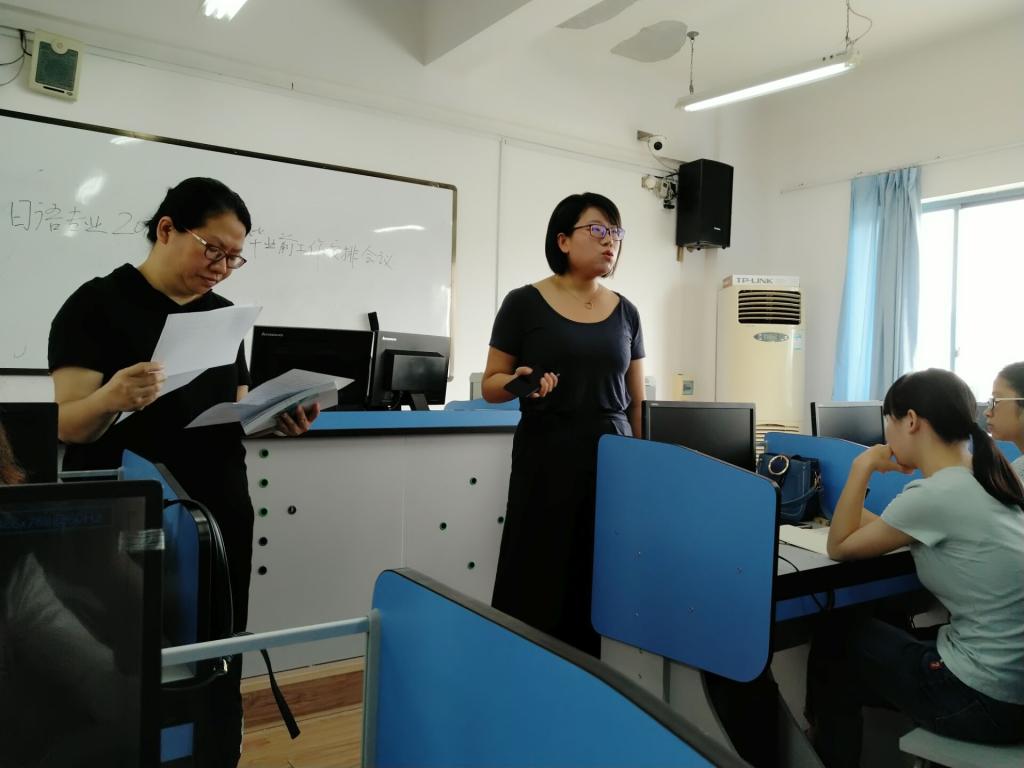 年级辅导员赵思聪老师做了补充发言。她希望同学们积极就业,毕业后保持与学校的联系,协助学校做好就业核查工作。最后曾文华老师和覃霄老师发言,再次强调了毕业论文的准备工作,做好校级答辩的准备,强调毕业前的安全保障工作和纪律性,动员全体同学尽早就业。