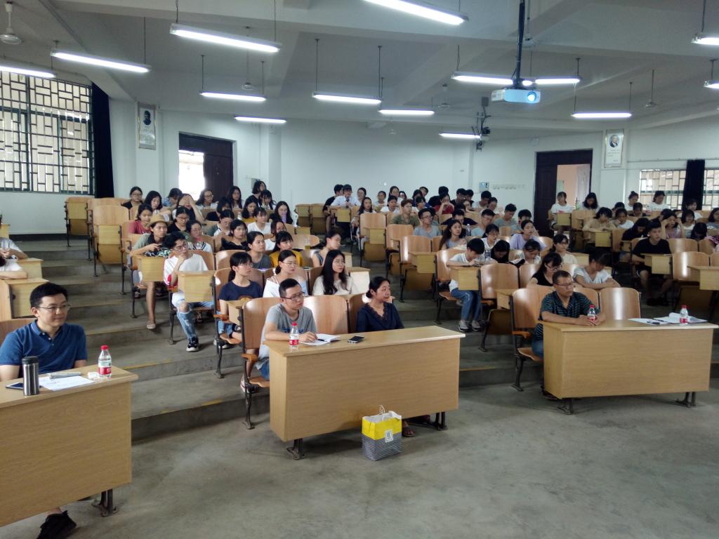 2018年6月19日,我院在雁山05308教室召开了2016级学生考研动员大会。出席大会的有院长全克林、副院长胡金、院长助理曾文华、英日语教研室正副主任以及英语系朱建斌老师,我院2016级全体学生到场接受了考研动员。