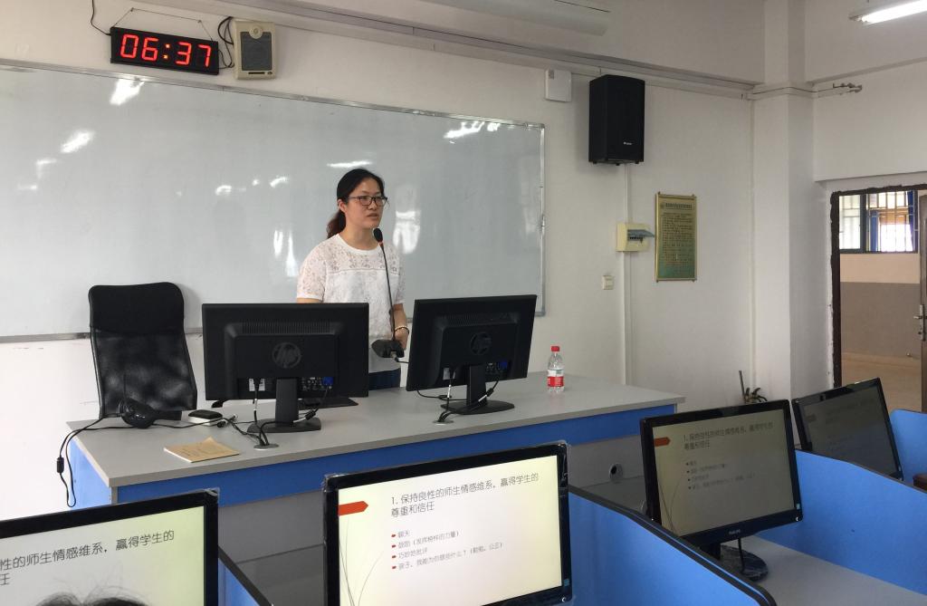 陈湘柳副院长首先总结了2017-2018学年大学英语的教学工作,指出该学年的教学工作取得了一定的成绩,但是也存在不足及需要改进的地方。接着由教师代表分享自己的教学经验。