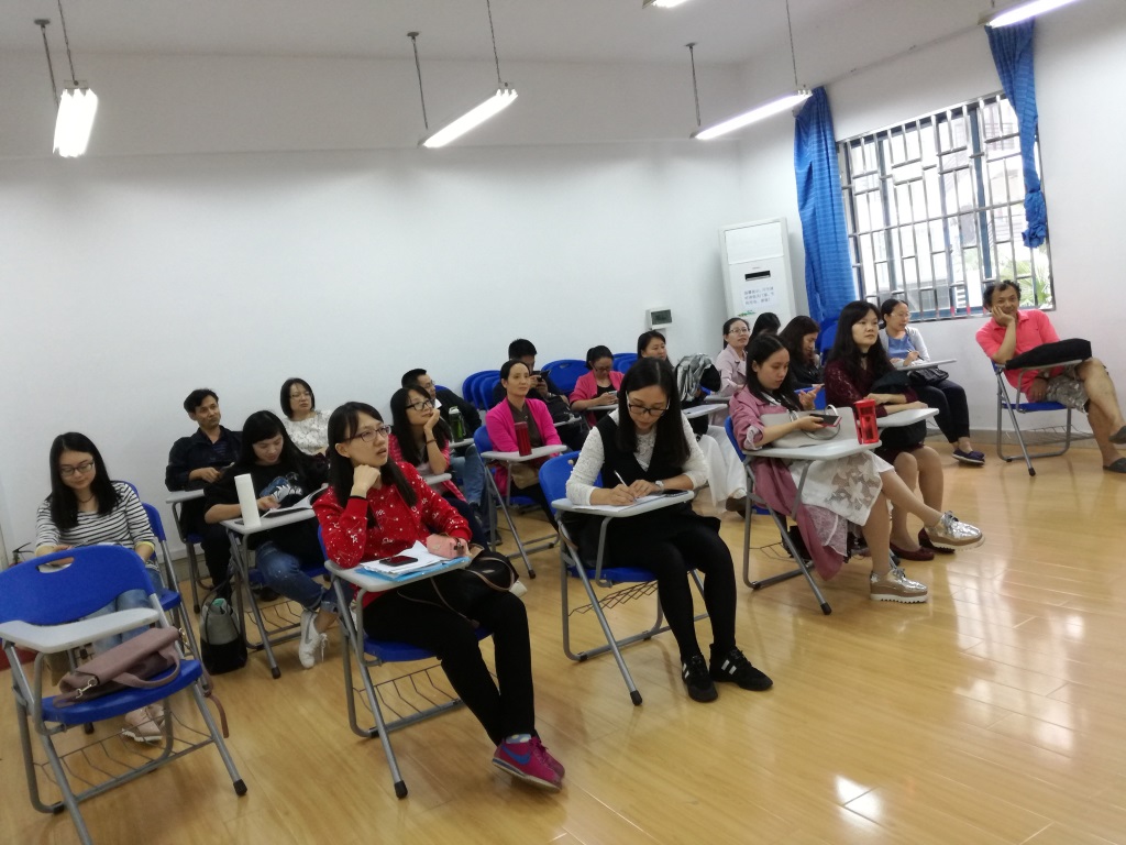 说课结束后,老师们踊跃发言,积极提出建议,为如何上好这一难度较高的课文出谋献策。莫娜老师提出,导入部分可以让学生们列出他们想象中领导人的气质和性格特征,然后让他们跟文章中谈及的要点一一对照,找一找有几条是符合他们所期待的。这一建议别出心裁,切合学生心理,得到很多老师的赞赏。另外,老师们还针对如何检查学生背书情况及平时成绩如何细化记录等方面进行了沟通与交流。同时,也就如何督促学生完成课后作业,帮助学生养成自觉学习英语的习惯展开了热烈讨论。
