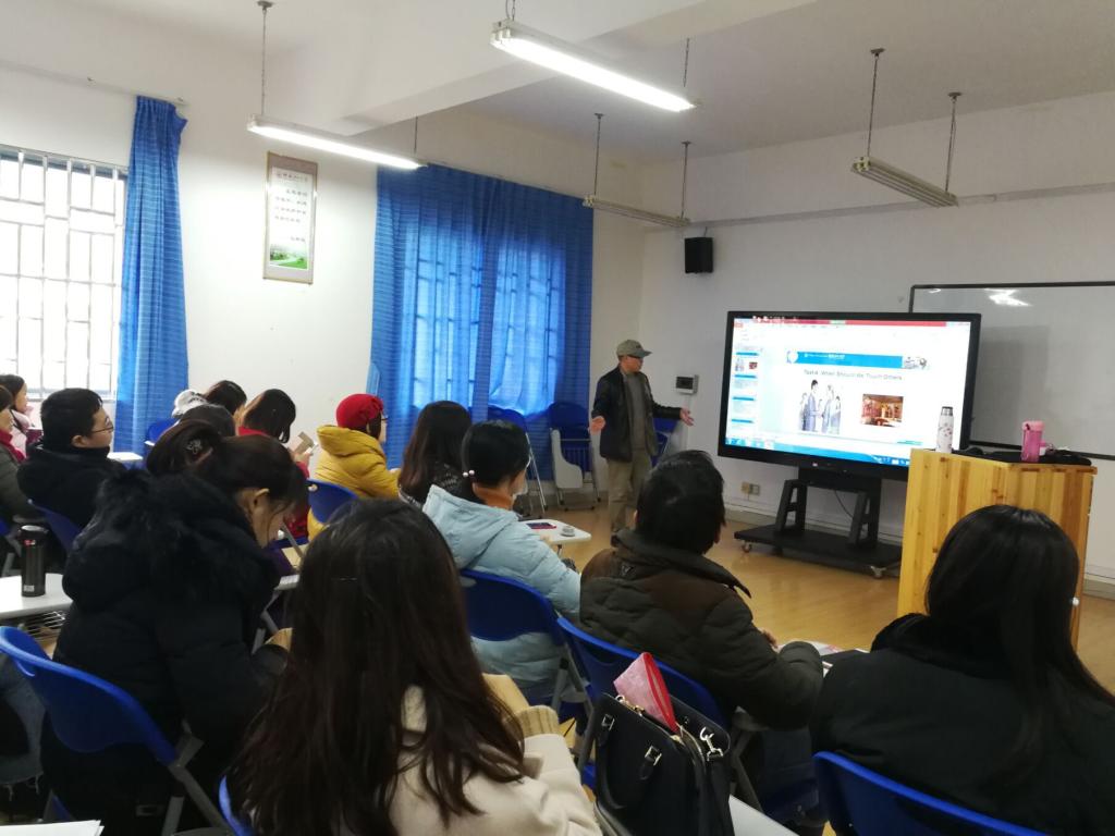 接着,莫毅德老师给大家展示了新目标大学英语第一册第七单元的备课。When Should We Touch Others?莫老师用Warming up作为导入,引导学生进行小组讨论:When Should We Touch Others?莫老师的第二个环节是listening practice,第三个环节是text organization。第四个环节是home tasks。