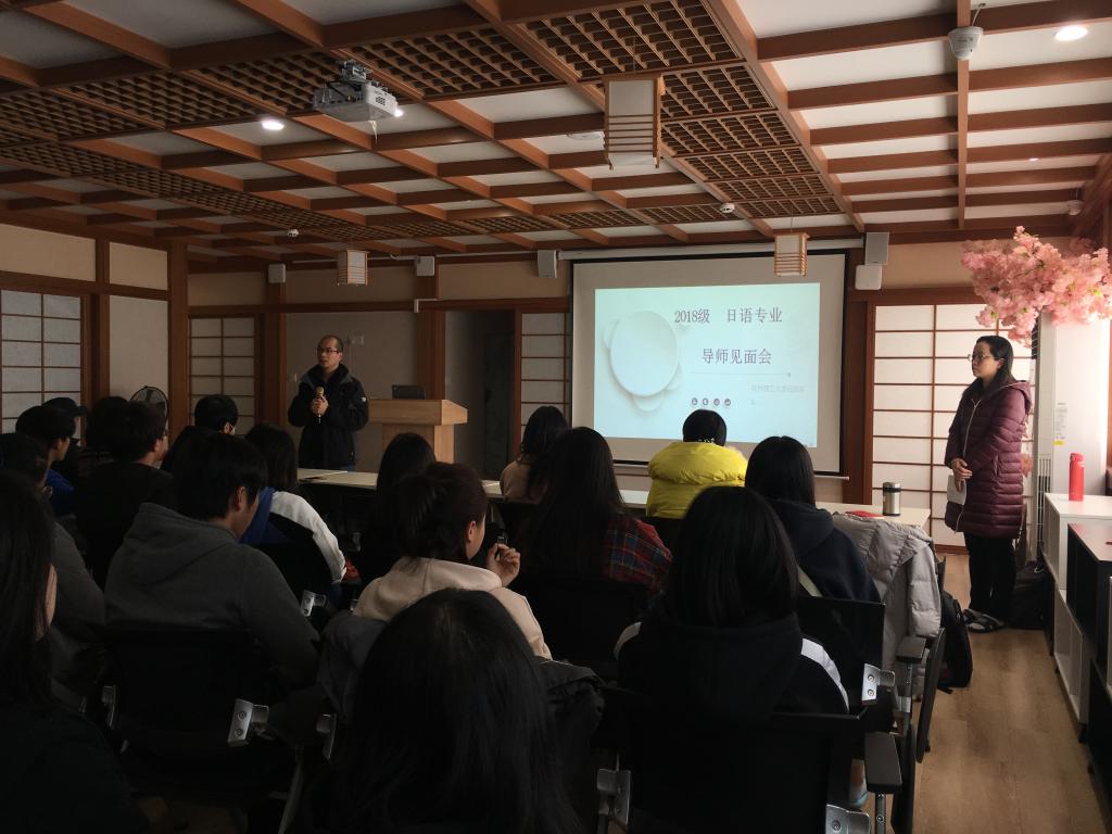 12月18日下午,外国语开元(中国)日语系2018级本科生导师见面交流会在我院日本文化体验馆举行,外国语开元(中国)院长助理曾文华、日语系主任覃霄、副主任邓圆、副教授张军、日语系各专业导师以及2018级本科生参加了本次见面会。副主任邓圆主持了此次见面会。