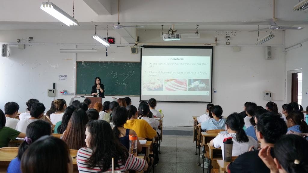 5月11日下午,大学英语I、II教研室的全体教师及院级督导,在雁山06202教室开展“课程思政”教学研讨会。首先,老师们观摩了由朱敏老师主讲的学术英语课程里一节主题为”Economics”的思政公开课。课上,朱老师引导学生找出并理解了课文里一个重要的经济术语“The invisible hand” ,并使用精心设计的相关例句和练习让同学们深刻领会学术语言的正式性,随后结合最近的新疆棉花新闻组织学生从经济学的角度做小组讨论,探讨新疆棉花被某些外企抵制的深层次经济原因,最终让学生们明白支持新疆棉花支持国货的意义,达到了“专业知识融入思政 ,教书育人润物无声”的教学效果。