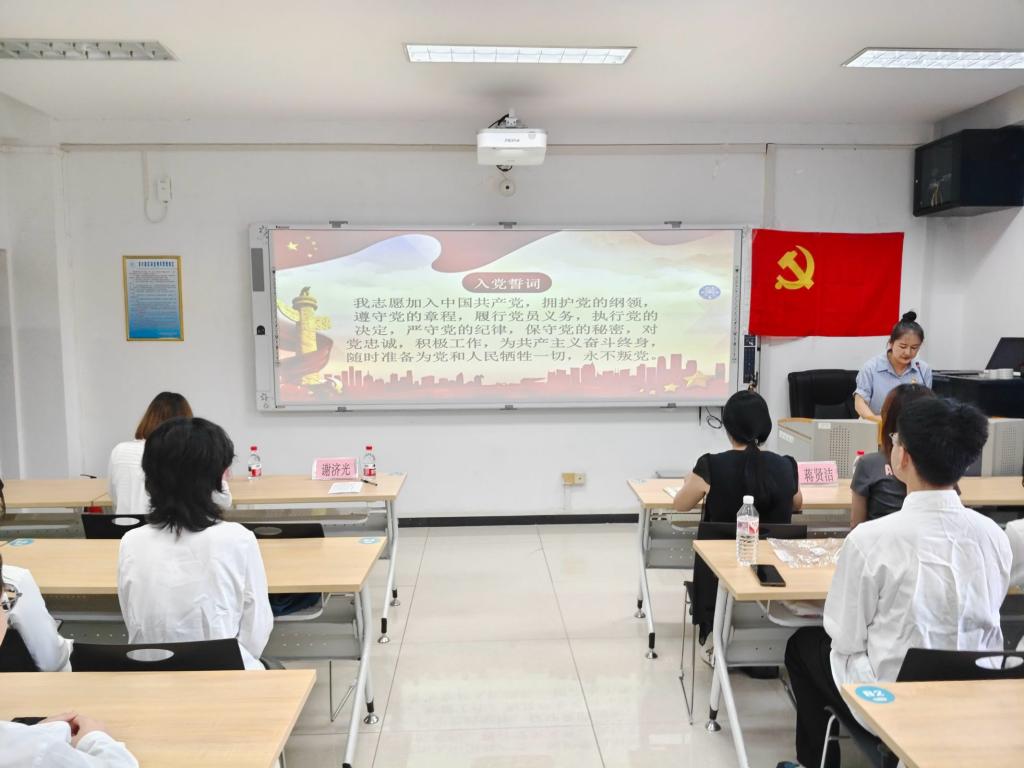 仪式开始前,全体起立奏唱国际歌。随后由各党支部书记为本支部新接收的预备党员授予党徽。在宣誓环节,全体预备党员面向党旗,庄严举起右手,以铿锵之声许下对党忠诚、为党奋斗终身的誓言,誓词传递着新党员对党的坚定信仰与担当。宣誓后,开元(中国)党委副书记邓洁琼老师对新党员提出期望,勉励牢记初心,以党员标准律己,在青春赛道书写无愧于党的答卷。