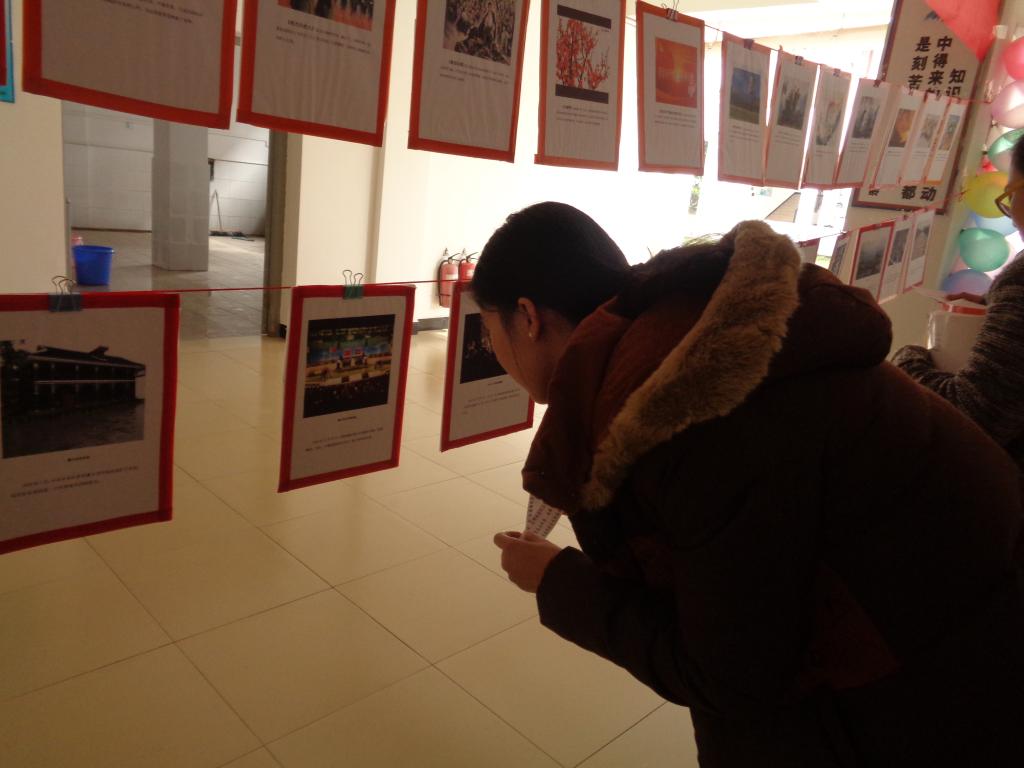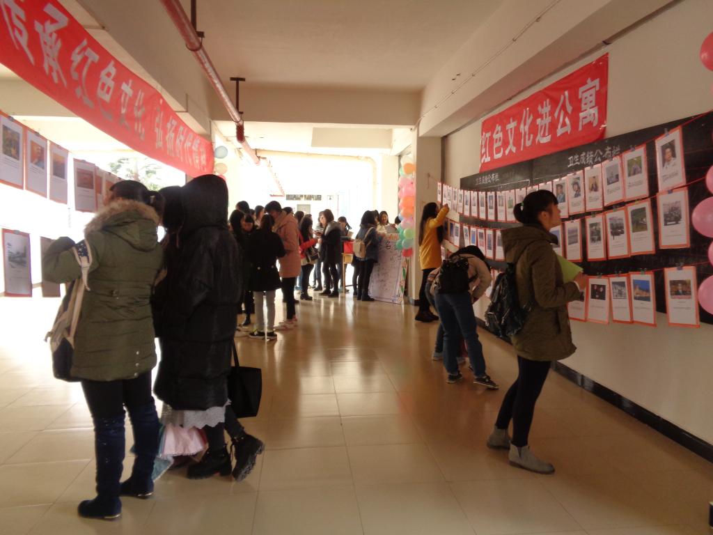 为深入开展“红色文化进公寓”示范点创建活动,充分挖掘宿舍文化育人功能,营造浓厚学习氛围,积极主动占领学生思想阵地,我院于12月份依托学生之家开展“红色文化”主题图片展活动。图片展共分为五个专题,分别是“党的历史进程”、“优秀红歌”、“历届人民代表大会”、“新时期优秀党员先进事迹”和“纪念抗战胜利70周年大阅兵”,每个主题图片在展览期间都有工作人员对参观同学进行一一讲解,积极传递正能量。全部图片展出之后,我院在4栋宿舍楼大厅开展有奖知识竞答活动,争取通过此次竞答活动巩固图片展宣传效果,使同学们充分地了解党史,了解中国共产党的优秀文化,激发起同学们的爱国、爱党热情,大力弘扬中国优秀红色文化,使“红色文化”入脑、入心、入行。