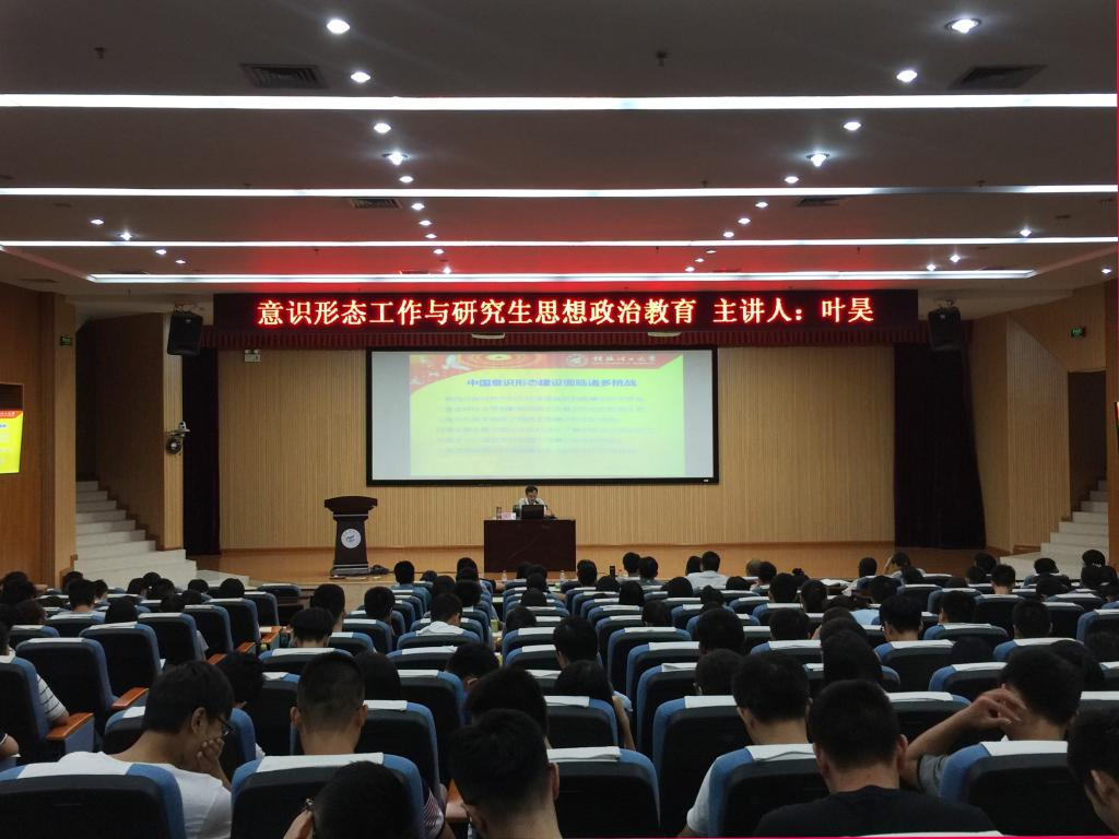 9月26日晚,学校在雁山校区图书馆报告厅召开“意识形态工作与研究生思想政治教育”专题报告会,报告会由学校党委委员、宣传部部长叶昊主讲,由研工部副部长、研究生院副院长金峰主持,全校研究生党员代表共200余人出席,我院组织全体研究生党员参加了此次会议。