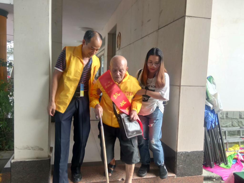 在抗战胜利纪念日来临之际,迎广西抗战老兵“回家看看”特别活动到来之际,我院受邀参加9月1日下午在市区桃江宾馆即原李宗仁将军的官邸旧址的志愿活动。由我院党务中心负责派遣的志愿者们到达志愿地点后搀扶60余位抗战老兵前往活动场地参加纪念活动座谈会。到达活动地点,主持人介绍出席活动的所有老兵名录后由老兵嘉宾发表讲话,然后主办方向所有出席本次活动的抗战老兵赠送一份代表广西特色,具有象征意义的纪念礼品,并发放慰问红包。