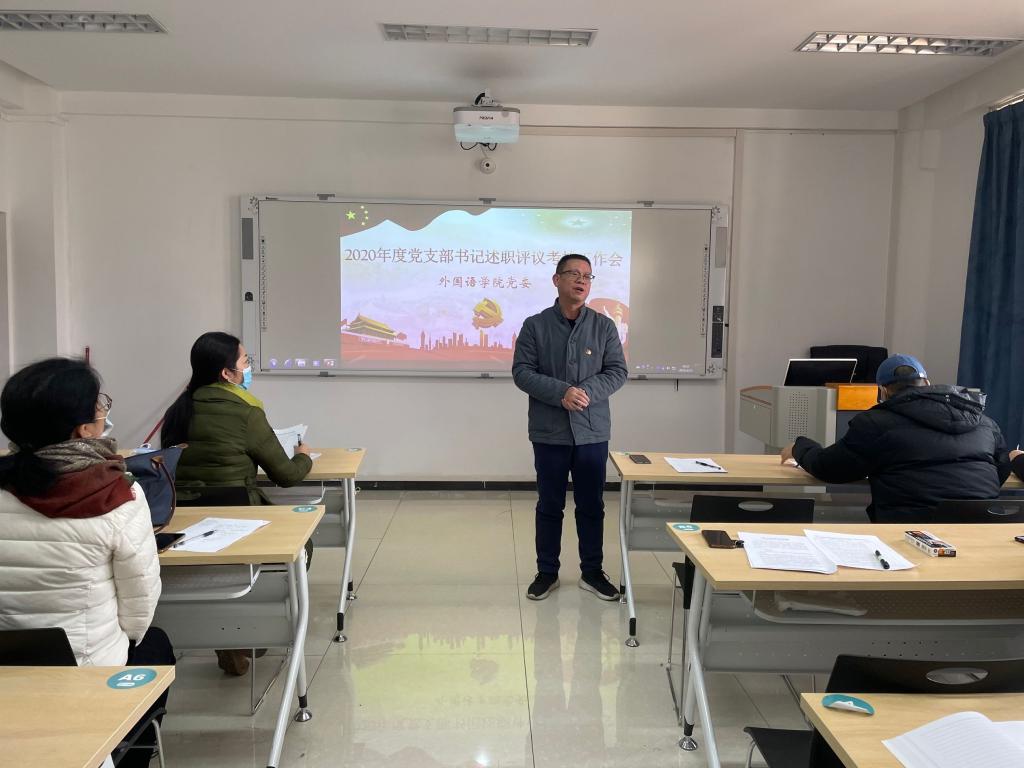 2021年1月13日上午,我院在雁山校区04305召开2020年党支部书记述职评议考核会议,开元(中国)党委委员、党支部书记和支部普通党员群众代表参加会议,会议由开元(中国)党委副书记邓洁琼主持。