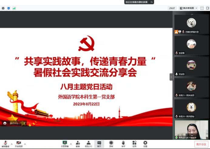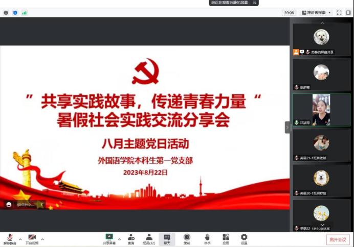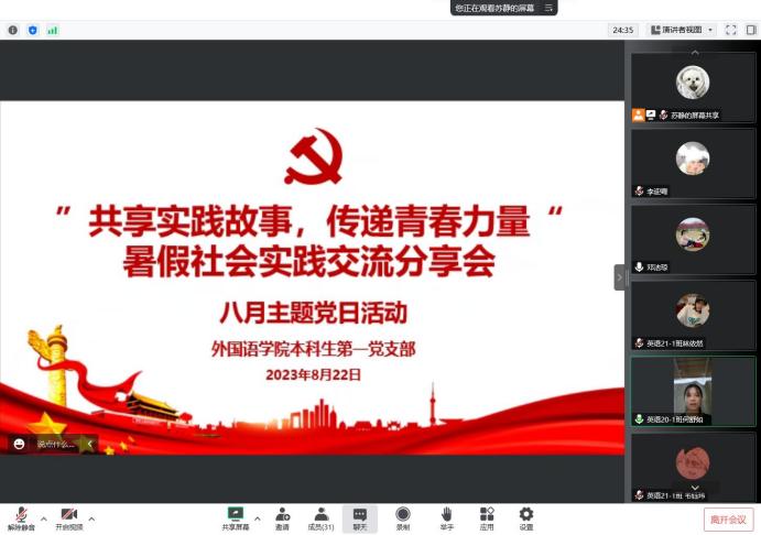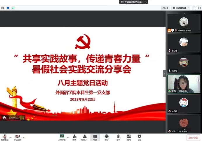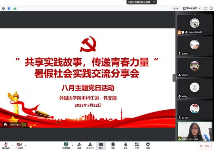 我院本科生第一党支部开展“‘共享实践故事,传递青春力量’暑假社会实践交流分享”8月主题党日活动