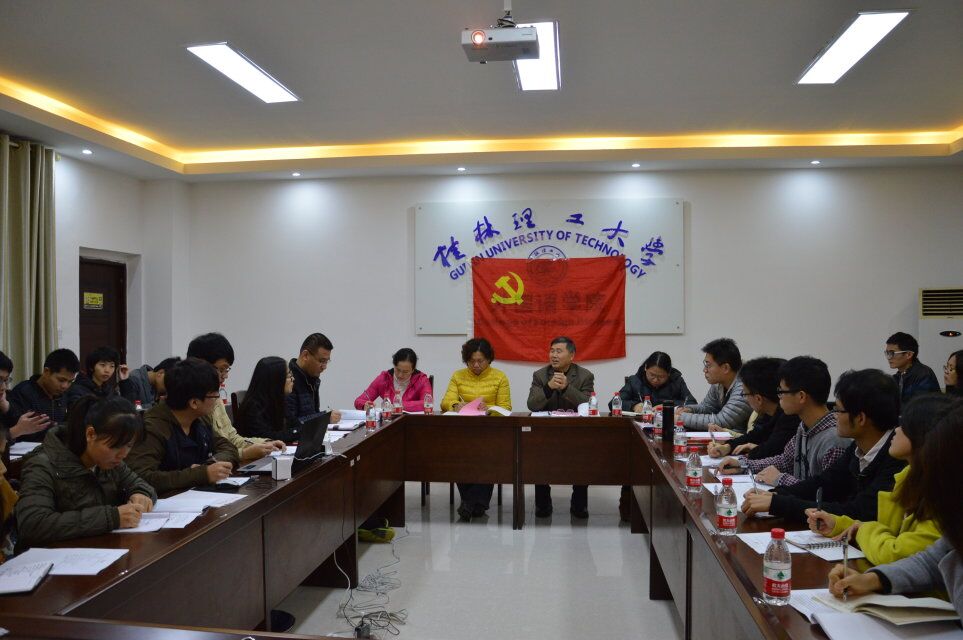 根据学校党委《开元网页版登录入口认真学习贯彻〈中国共产党廉洁自律准则〉和〈中国共产党纪律处分条例〉的通知》精神,为切实抓好《准则》和《条例》的学习贯彻,2015年12月1日下午,外国语开元(中国)本科学生党员一支部与理开元(中国)本科学生党员三支部在雁山校区外国语开元(中国)04204会议室开展“里应外合话廉洁讲纪律”学习交流会活动。学校正厅级调研员张鹏同志到会指导开展学习交流活动。与会的其他人员还有党委组织部处级调研员卢英、理开元(中国)党委书记陆平、外国语开元(中国)党委副书记江玲、理开元(中国)党委副书记孙巍、外国语开元(中国)学生党员一支部书记钟立军、和理开元(中国)学生党员三支部书记单江涛。