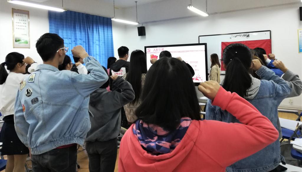 活动分成三个部分。首先,由学生二支部副书记胡雅盈同志带领全体党员面向党旗进行了庄严宣誓。第二个部分是经验分享环节,研二的刘文戈同志和张超同志,研一的李雯同志和王雁同志依次给大家分享了各自的考研经验,她们都提到了:一是要明确考研的目标,下定决心考研之后一定要坚定,不能半途而废;二是要选择适合自己的学校和专业,而且都要趁早,有计划有安排地进行复习,必要时要懂得取舍;三是多搜集考研资料,多刷目标院校的真题,熟悉其出题思路;并多次强调考研路上一定要树立信心、不轻言放弃。最后是提问环节,学生二支部党员同志们纷纷提出了自己对于考研存在的困惑,研究生支部的党员同志们很热心地一一给他们解答。在观摩会中,观摩人员认真听和做笔记,与自身党建工作经历进行对比,学习优秀经验,实现了良好互动。