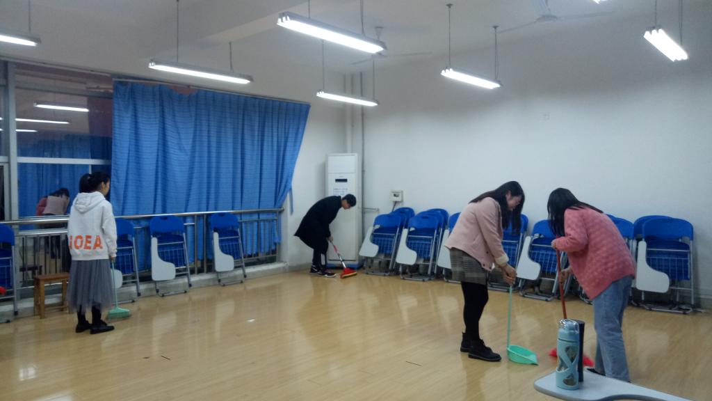 为进一步深入学习雷锋精神,提高党员党性意识,培养党员的奉献意识,2019年11月22日,我院学生第二党支部全体党员前往雁山校区四栋教学楼语音教室04206、04208、04302、04304进行清洁大扫除义务劳动。