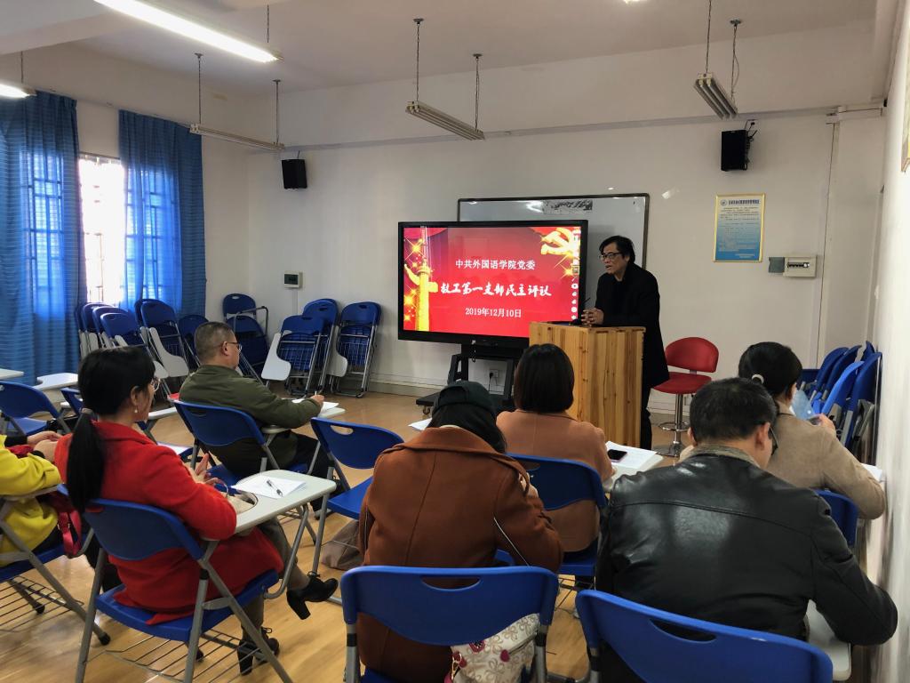12月10日下午,我院教工一支部党员同志在雁山校区04206教室参加了支部2019年民主评议会。本次民主评议会由支部书记张华同志主持。外国语开元(中国)党委书记谢济光同志以普通党员的身份参加了民主评议会。