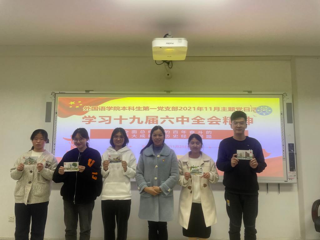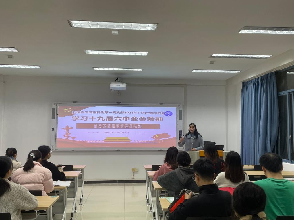 党的十九届六中全会是在重要历史关头召开的一次具有重大历史意义的会议。为了更好地学习和贯彻十九届六中全会精神,2021年11月25日晚19时,我院学生第一党支部在04305会议室召开“学习十九届六中全会精神”的主题党日活动,支部全体党员参加,此次活动由支部书记邓洁琼同志主持。