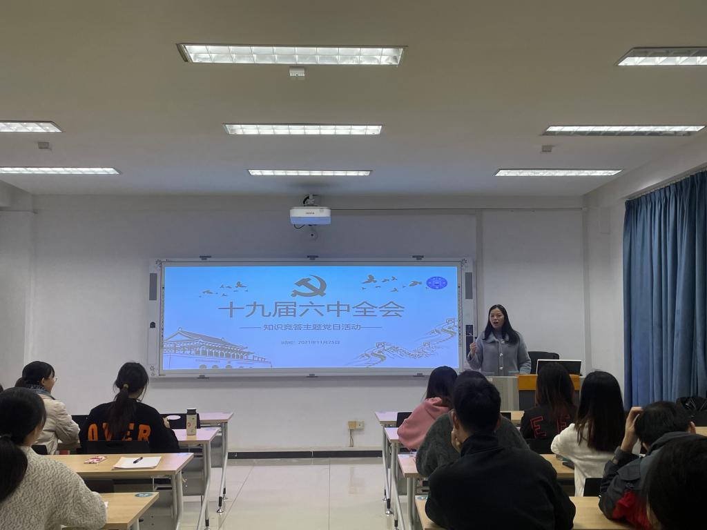 首先,支部书记邓洁琼同志做学习十九届六中全会精神的专题辅导报告。她从六中全会的基本情况和历史意义、六中全会精神的主要内容、全会决议等三个方面较为全面系统地解读了十九届六中全会精神。接着,邓洁琼同志组织全体党员进行了有关十九届六中全会的知识竞赛。本次竞赛形式为笔试,题目类型包括单选题、判断题、多选题。在答题过程中,同志们独立作答,沉着应对,以积极饱满的精神状态投入到竞赛中,现场氛围紧张而有序。其次是与会党员踊跃分享学习体会和感想,缪怡洁等六名党员同志进行了相关发言。同志们纷纷表示要认真学习革命先辈带领中国人民开创美好新时代的魄力和胆识,继承和弘扬党的优良传统最后作风,让砥砺奋斗的青春之花绽放在祖国需要的地方。