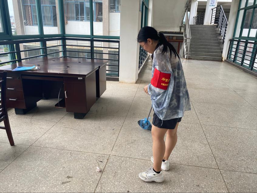 二是四栋教学楼公共区域清扫活动,主要区域为走廊、自习座位、朗读亭,工作内容为清洁自习座位和朗读亭桌面,以及清扫过道和座位。活动期间,各位同志认真负责,一丝不苟地完成了清洁任务。