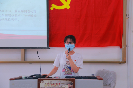 本次宣讲会共有9位同志上台进行宣讲,分享他们心目中的榜样故事。首先,各位同志依次上台宣讲。江钰涵同志带领大家回望了曾洪培奋斗的峥嵘岁月;苏荣莹同志带领大家重温了“杂交水稻之父”袁隆平院士将一生都奉献给了发展杂交水稻、造福世界人民的故事;杨美娟同志带领大家学习了北师硕士黄文秀同志在脱贫攻坚第一线倾情投入、奉献自我的优秀品质;赵建佳同志向大家介绍了“刀尖上的舞者”——缉毒警察,他们用生命捍卫社会的稳定与发展;李美信同志分享了援鄂护士梁小霞用年轻生命书写医者救死扶伤的感人故事;宋佳同志讲述了华坪女子高级中学校长张桂梅同志用教育为女孩们筑梦、用教育之光阻断贫困代际传递的先进事迹;黄真同志介绍了“烈火骑士”——龙杰借钱加油去救灾,逆行36小时送物资的故事;周泽似同志带领大家学习了“最美村官”—秦玥飞同志扎根基层、甘于奉献的伟大精神;李玲同志分享了黄丽环同志怀揣理想进基层,在“战疫”中书写绚烂青春的故事。接着,开元(中国)党委副书记、纪委书记、本科生第一党支部书记邓洁琼老师对本次活动做了总结,她对全体党员同志提出寄语:希望大家学习榜样的品质及精神,做一个有理想、有本领、有担当的青年。