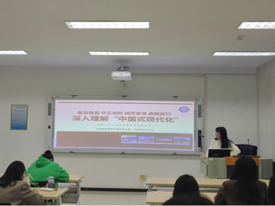 为深入学习宣传贯彻党的二十大精神,进一步提高党员党性修养,2023年3月13日,我院本科生第四党支部于在04305开展了第一季度“深入理解中国式现代化”专题党课。本次会议由学生第四党支部书记李林军同志主讲,全体党员按时参加。