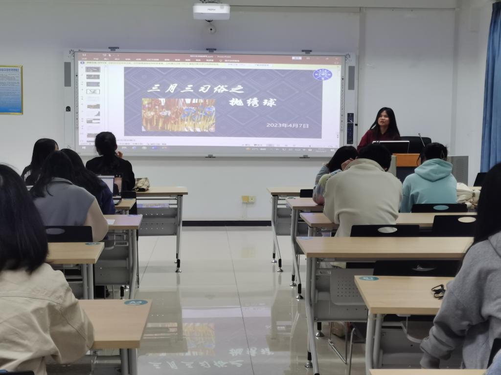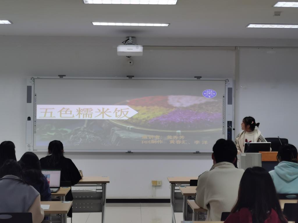 活动伊始,副书记王祥雨同志以全国两会精神为切入点,阐释铸牢中华民族共同体意识的重要性,进一步强调民族发展对强化国家凝聚力的意义。接着,3名积极分子依次就“广西三月三”这一主题进行分享,畅谈自己对广西三月三的认识及民族文化的内涵。其中,唐火凤讲述了广西三月三的别称与意义,她提到坚守"广西三月三”节日的民俗仪式,有助于提升当地人民群众的民族文化认同意识。李晓婷介绍了广西三月三抛绣球的特色习俗,她提到壮族绣球形成的文化价值积累于民族文化的发展的现实意义和历史意义。黄秀芳分享了壮族五色糯米饭的制作工艺,她也表明了自己要传承这一技艺的决心。最后,王祥雨同志指出,我们要将“弘扬民族文化”内化于心,外化于行,自觉提高自身文化素养,传承优秀民族精神,弘扬优秀传统文化,形成热爱优秀传统文化的良好风气。