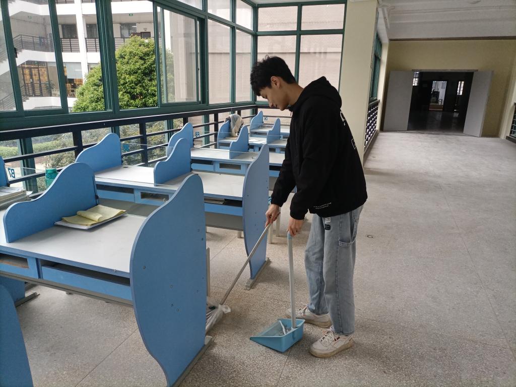 活动前期,本科生第一党支部认真做好教学楼清扫任务的分配工作,将16名在校党员依次分为4组,以小组为单位,分区开展清扫活动。同时,支部将清扫任务落实到个人,以保证本次活动的顺利进行。活动伊始,16名在校党员纷纷带上扫把、垃圾铲和抹布等劳动工具,按时签到。清扫期间,全体党员满怀热情,积极主动,各负其责,不放过任何一个角落,认真仔细做好走廊和自习室的清扫工作,齐心协力为创造干净、整洁和舒适的校园学习环境贡献自身的力量。