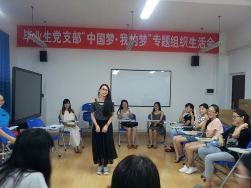 在毕业生党支部开展一次“中国梦•我的梦”专题组织生活会,毕业生党员纷纷发表自己对“中国梦·我的梦”的看法,共同畅谈“中国梦”、“桂工梦”和个人的就业梦、创业梦、成才梦,并为母校的发展建言献策。