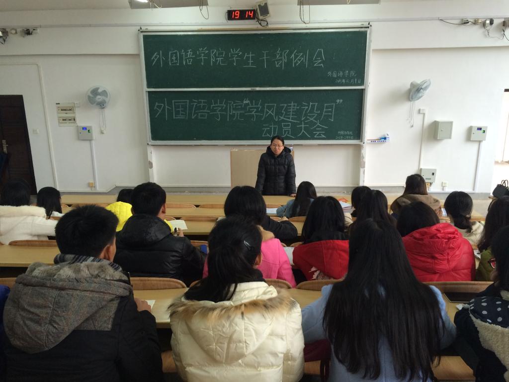 为认真贯彻落实学校2015年学生工作专题会议精神,及时传达“学风建设活动月”工作布置专题会议内容,12月9日中午,外国语开元(中国)在致远楼04325教室召开“学风建设活动月”动员大会。开元(中国)党委副书记江玲以及全院辅导员出席本次会议,开元(中国)全体学生干部参与本次动员大会。