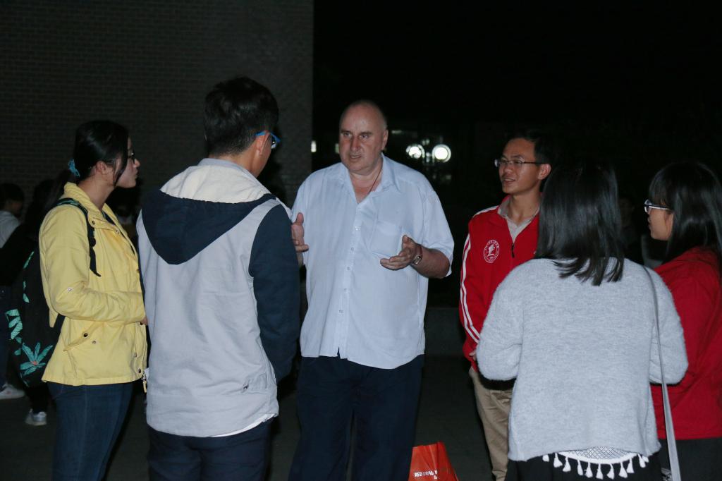 本次英语角活动以畅谈理想为主题,吸引了众多同学前来参加。活动过程中,。同学们与外教各自围成一个圈,用英语交谈人生、理想与生活,外教们丰富的人生阅历让同学们大开眼界,同学们积极与外教们畅谈,活动现场氛围十分融洽。