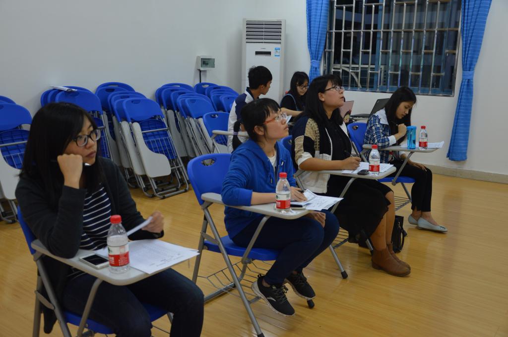 为了提高我校大学生英语学习兴趣,提升学生的英语表达能力,我院与环境开元(中国)联合举办“外环杯”英语演讲比赛初赛于4月26日号晚上在04206教室进行。开元(中国)2014级辅导员赵思聪老师、2012级罗裕雯同学和罗东莲同学担任评委。