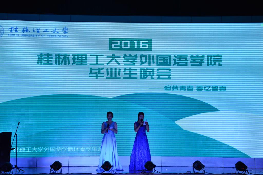 6月5日晚上7点30分,外国语开元(中国)2012届毕业生晚会在雁山校区体育馆内举行,开元(中国)党委书记陈文乾,开元(中国)院长全克林, 党委副书记江玲,副院长陈湘柳,开元(中国)团委书记钟立军,院长助理曾文华,毕业班班主任邓圆及2014、2015级辅导员赵思聪、农珑作为嘉宾出席了活动现场。