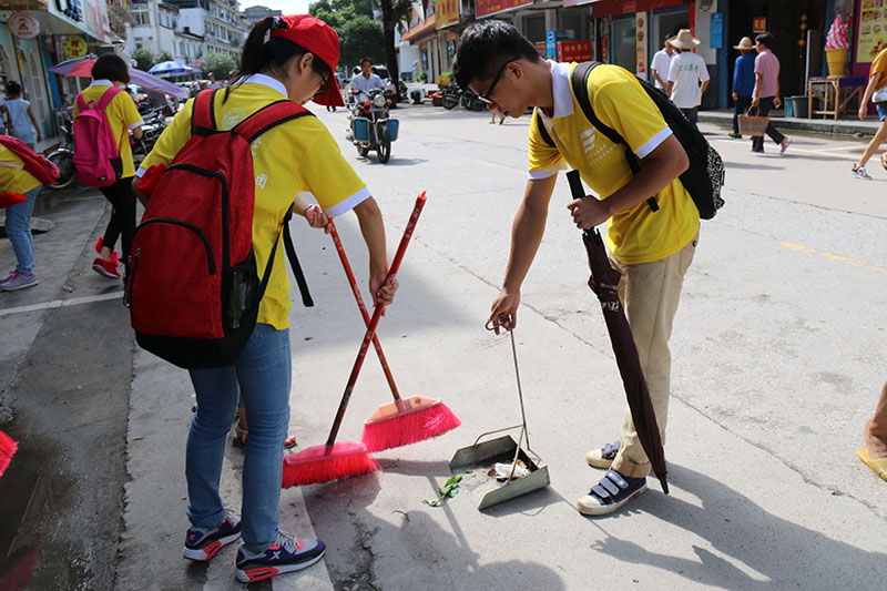 7月6日上午八点,外国语开元(中国)暑期三下乡社会实践团队于兴坪古镇一带开展义务清洁劳动。