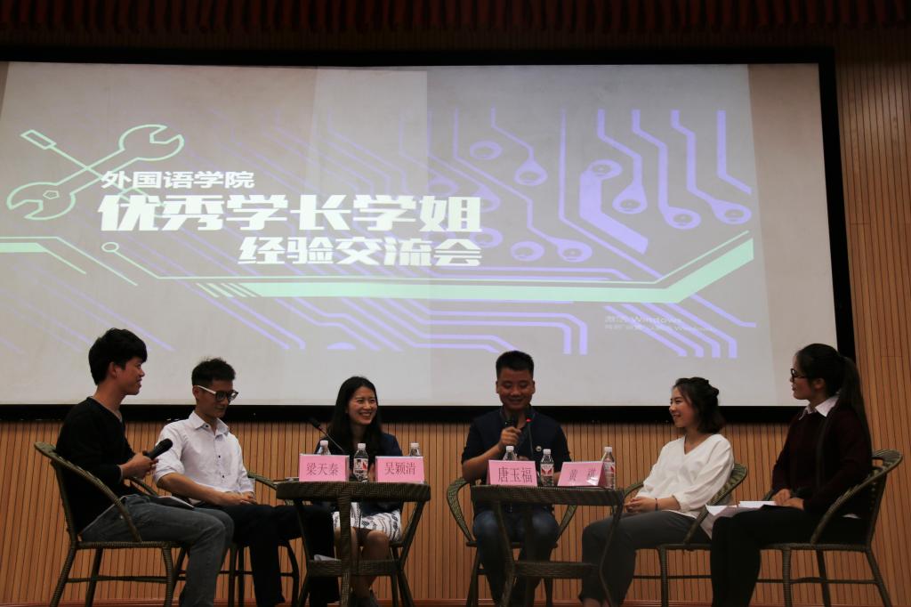 2016年10月19号晚上7点30分,我院在雁山校区图书馆报告厅举办了优秀学长学姐经验交流会。此次交流会邀请到了黄棋学姐、唐玉福学长、吴颖清学姐和梁天秦学长,我院2016级全体新生参与了此次经验交流会。