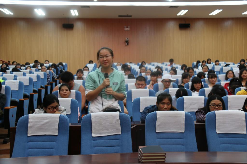 在交流会上,学长学姐们依次为新生们分享了自己的经验。黄棋学姐向新生们分享了她在日本作为交换生的经历,强调了环境对学习外语的重要性,并讲述了日本饮食、服饰、生活习性的相关知识。唐玉福学长分享了在大学国旗班的经历,强调了时间观念的重要性,根据自身在大学期间参与活动的经验,提醒新生们要合理运用时间,学会分配好时间。吴颖清学姐向新生们讲述了她的考研经历和在学校时担任班长并如何管理班级的相关经验,同时还给新生们分享了开元网页版登录入口大学恋爱的经验。最后经验分享的是梁天秦学长,他大学期间不花家里一分钱和各种任职经历博得了新生们的阵阵掌声,此外,他还特别强调了体育锻炼的重要性,希望每位同学在大学期间都要坚持体育锻炼。在最后的观众提问环节,同学们都踊跃发言提问,学长学姐们也都认真的为同学们解决疑问,此次经验交流会也顺利结束。