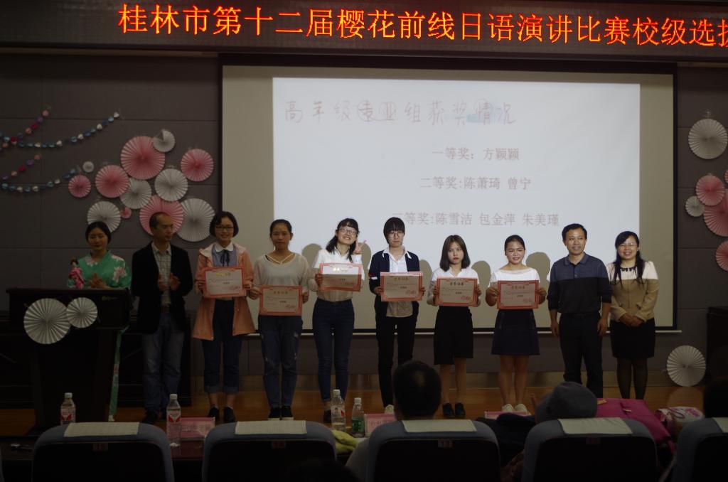 又是一年樱花盛开的季节,在花瓣以每秒五厘米下落的时候,第十二届樱花前线日语演讲校级选拔赛于2017年4月25日在地开元(中国)报告厅隆重举办。比赛使用日语进行演讲,分为专业组和非专业组进行比赛。专业组比赛根据年级划分为一年级组、二年级组、高年级组(三年级及四年级)。专业一年级组与非专业组比赛题目自定。专业二年级组与高年级组比赛题目为以下二主题二选一:(1)日中相互理解を目指してー私がやってきたこと、やってみたいこと(增进中日相互理解——我之所想 我之所为); (2)私が起業するならこんな企業(我要创办的企业)。每组一等奖1名,二等奖2名,三等奖3名。经过激烈的角逐方颖颖同学等4名同学分别获得各组比赛的一等奖。