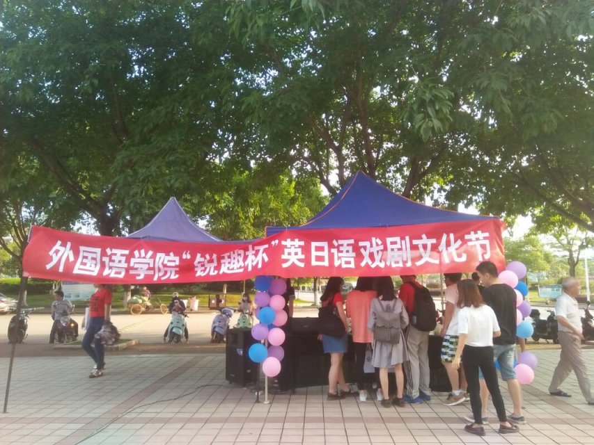 2017年5月11日至12日,我院为即将到来的“锐趣杯”英日语戏剧文化节进行了宣传及视频评比活动。11日当天,我院学生会在我校雁山校区1号食堂和3号食堂进行设点宣传。12日晚上7点半,视频评比活动在雁山校区05206教室举行。