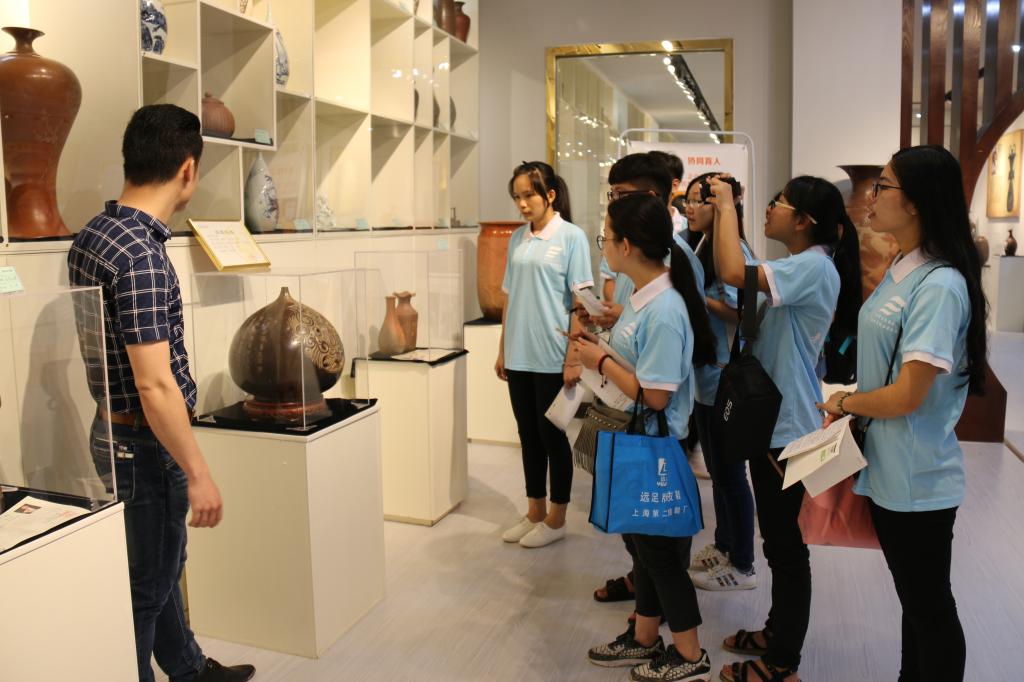 7月5日上午九时许,外国语开元(中国)暑期社会实践“丝路”团队来到了位于滨海新城的钦州开元(中国),在陶瓷与设计开元(中国)老师韦忠德及两名学生负责人的带领下参观了坭兴陶制作流程实验室,从中了解了坭兴陶的相关制作工艺以及坭兴陶展品的艺术与商业价值。