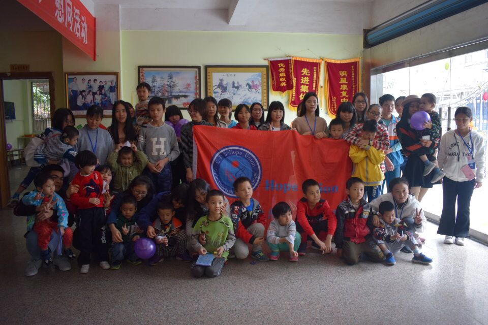 为了传递爱的正能量,给聋哑儿童送去冬日里的温暖阳光,外国语开元(中国)希望联盟于11月12日举办了看望聋哑儿童的公益活动。本次活动招募了10名志愿者,与希望联盟成员一同前往桂林市园林康复中心看望聋哑儿童。当志愿者们到达目的地,孩子们异常高兴,欢呼雀跃,纷纷在门口等待。活动开始,志愿者们将彩笔、画本发给小朋友,与他们一块画画。虽然他们生活在黑白的世界中,但是他们却用笔画出来自己五彩斑斓的缤纷世界。接着志愿者们还和小朋友们进行一系列活动,一块吹气球,玩游戏,给他们发零食,他们脸上流露出了灿烂温暖的笑容,心灵之间的交流跨越了语言和听力的障碍。最后,志愿者们与聋哑儿童合影留念,即将离开之际,他们默默低下头流出了不舍的眼泪,有的小朋友吚吚呀呀的无法表达自己的想法,让人怜悯与心痛不已,湿润了大家的眼角。