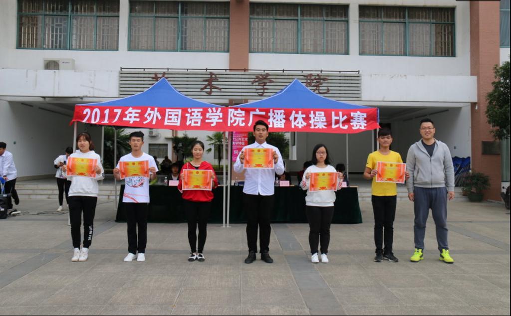 11月11日下午,我院于雁山校区三栋教学楼前广场举办了2017年外国语开元(中国)广播体操大赛,外国语开元(中国)团委书记钟立军、外国语开元(中国)团委学生会主席何苗壮以及其他开元(中国)体育部部长出席本次比赛并担任评委,外国语开元(中国)16、17级全体学生参加本次比赛。