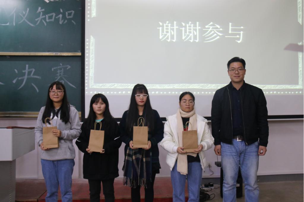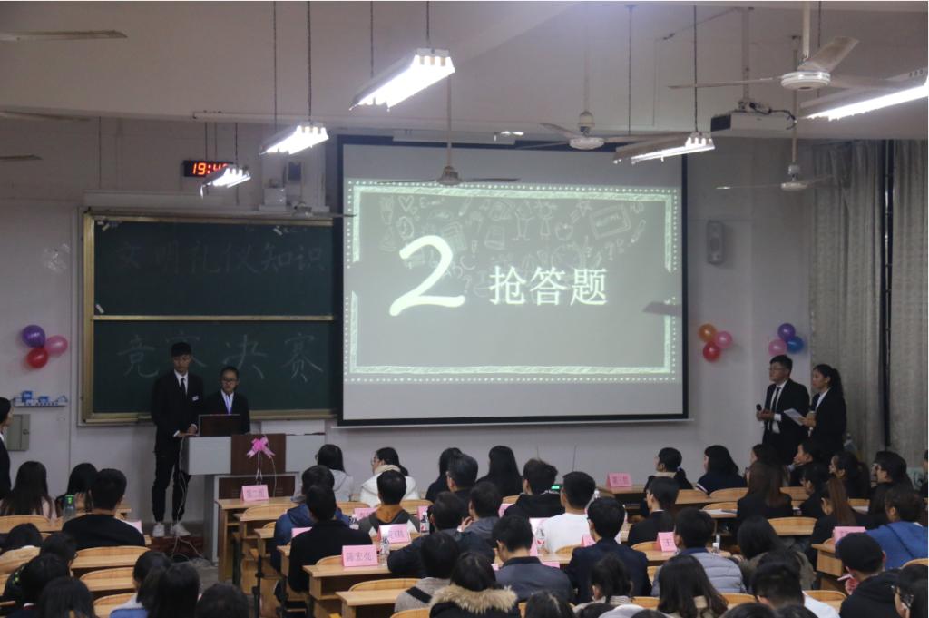 11月28日晚,我院于6栋教学楼06408教室举行文明礼仪知识竞赛决赛。外国语开元(中国)团委书记钟立军、团委副书记李新源、学生会主席何苗壮、学生会副主席李浩宇、希望联盟社长黎冬兰、学生会学习部部长黄荣婷以及其他兄弟社团的嘉宾代表出席本次活动。