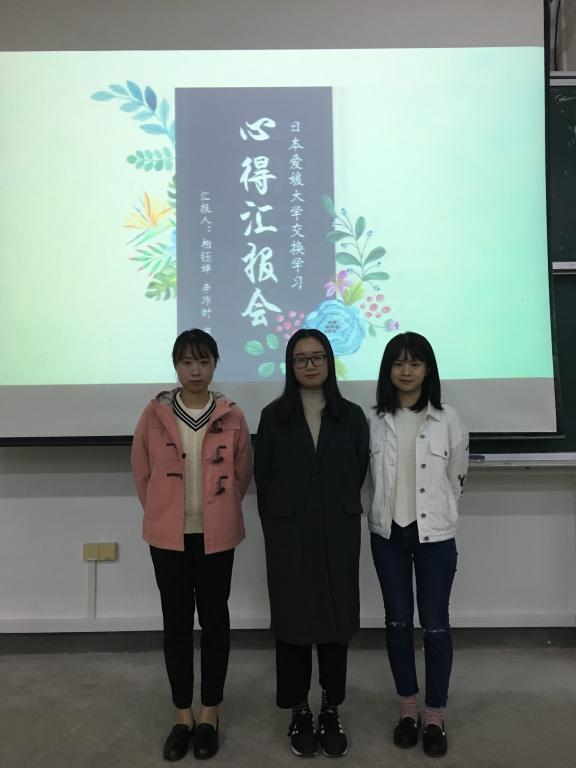 11月14日下午,我院于05307教室举行爱媛大学交换生心得讲座。本次讲座由我院赴日本爱媛大学交换生柏钰婵、李沛时以及周小桨同学主讲。外国语开元(中国)日语教研室副主任邓圆老师出席此次讲座,17级日语专业同学参与讲座。