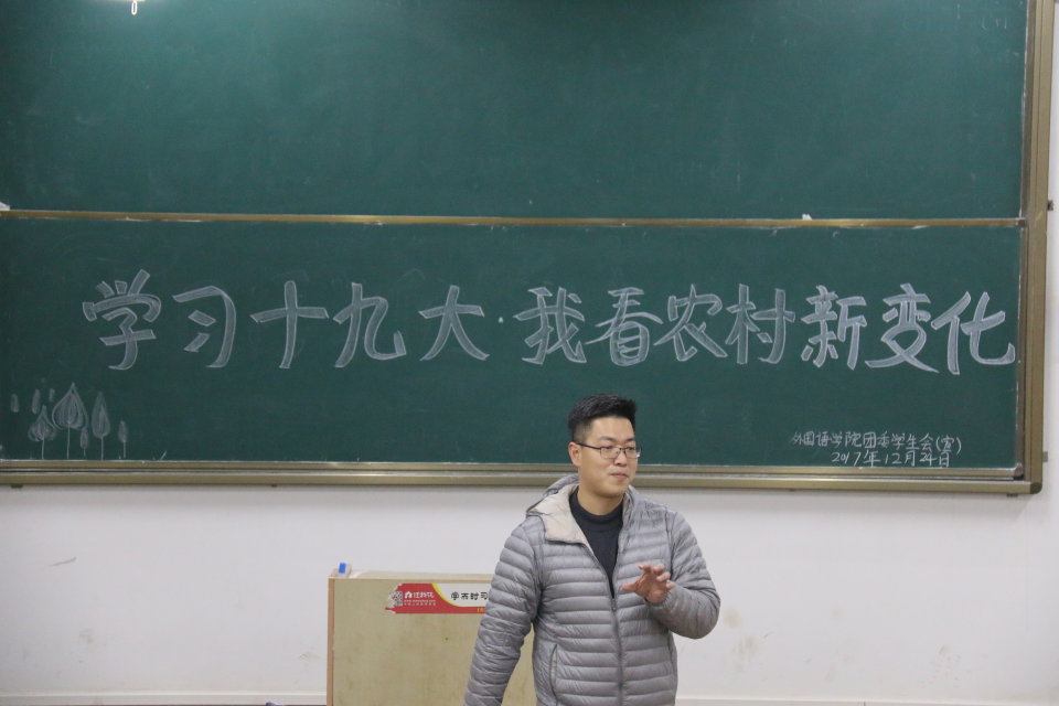 2017年12月24日晚上8点10分,在四栋教学楼04525教室,外国语开元(中国)团委书记钟立军老师利用成长成才课时间举办了一场题为“学习十九大,我看农村新变化”的专题报告。