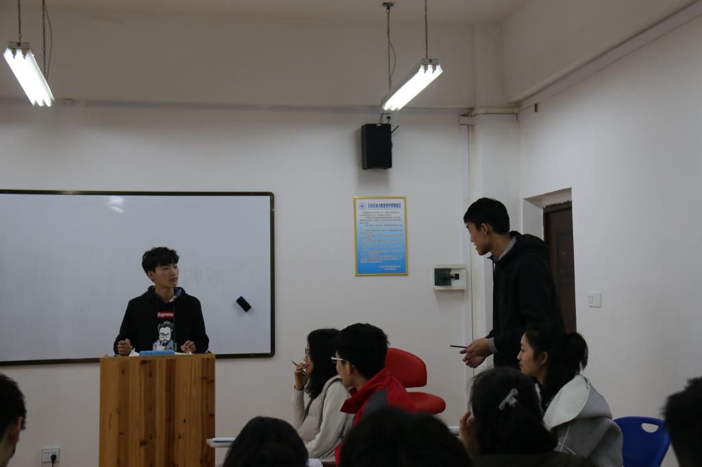 在本次英语辩论赛表演赛开始之前,指导老师邢芸向大家介绍了辩论流程、要点以及注意事项。表演赛正式开始,选手们应答如流,以丰富的词汇储备和严谨的逻辑思维,从容自信地展现英语实力。在新颖的英国议会制辩论比赛中,各队选手情绪饱满,积极迎战。台上选手们唇枪舌战、精彩角逐。台下备战队员认真记录、行思坐想。一番激烈而精彩的比拼后,指导老师邢芸对本次辩论赛进行了全面的点评和总结。在活动最后,同学们意犹未尽,纷纷提出了自己在观战中的问题,邢芸老师和英语思辩社辩论队的队员们耐心详细地为大家答疑解惑。