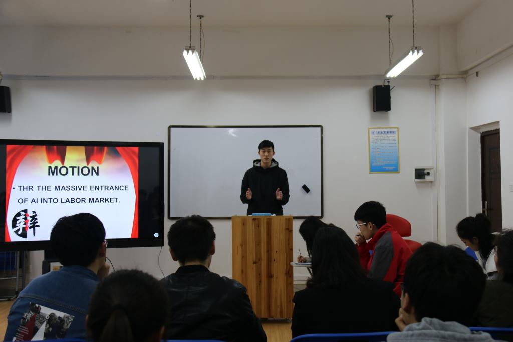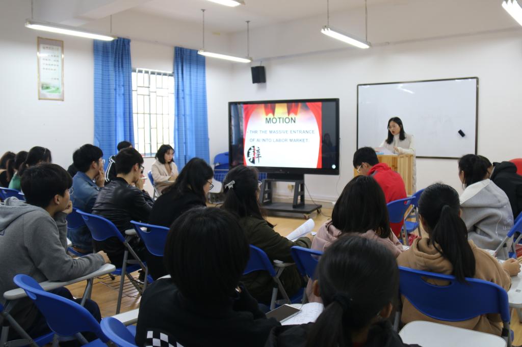 为加强英语学习氛围,丰富校园文化活动。3月6日下午,第21届外研社杯全国大学生英语辩论赛桂林理工大学赛区表演赛在我校雁山校区4栋教学楼206教室顺利举行。本次表演赛由外国语开元(中国)主办、英语思辩社承办,由我院英语教研室老师刑芸主持。英语思辩社的同学们积极到场,热情参与比赛。