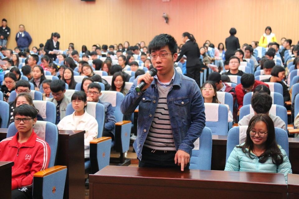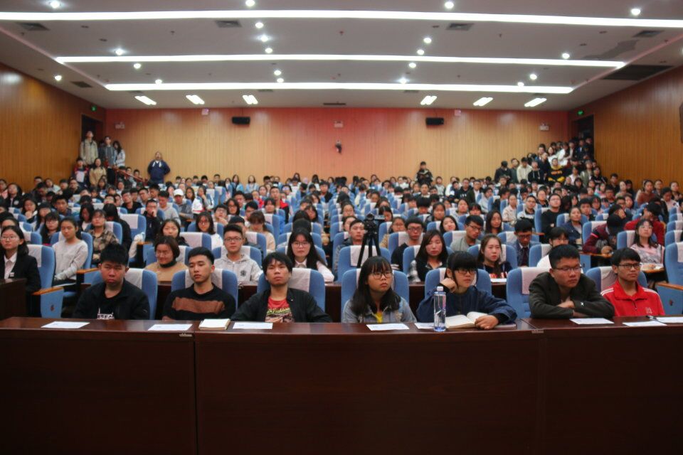 为提升同学们的外语水平,丰富校园生活。2018年3月10日下午,新东方在线英语学习技巧与实战经验分享会在我校雁山校区图书馆报告厅举行。本次分享会由外国语开元(中国)团委学生会主办,新东方集团功勋讲师刘琦主讲。出席嘉宾有我院团委书记钟立军、新东方华南区域总监孙卫军、负责人黄建刚。我校学生反响热烈,现场气氛高涨、座无虚席。